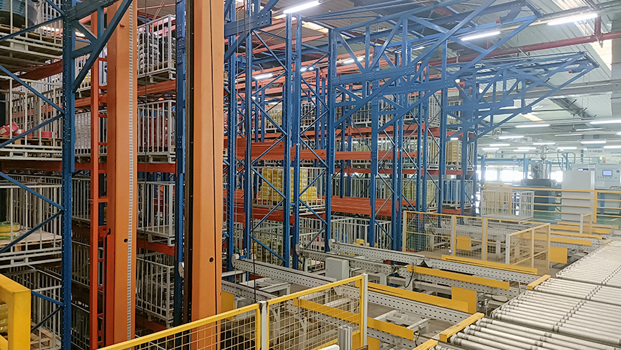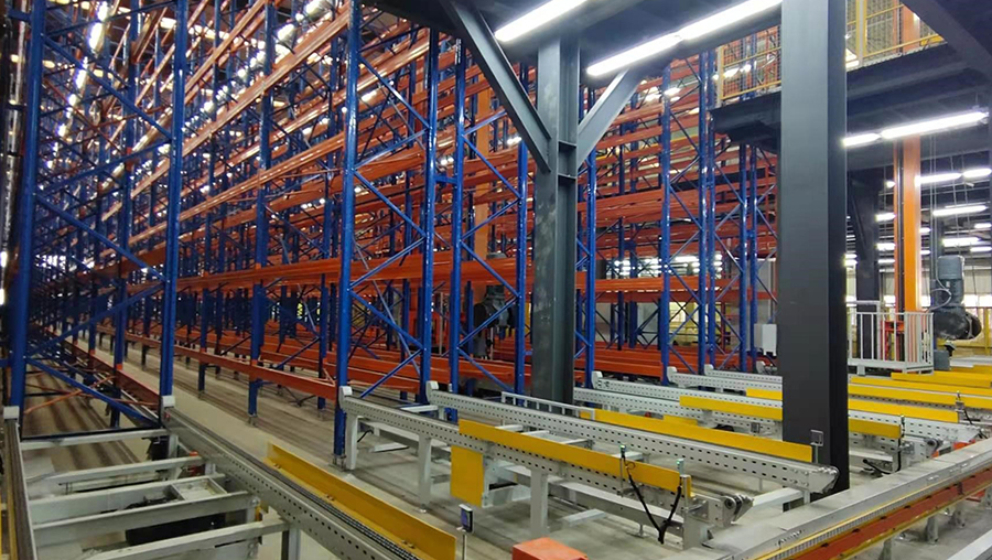 本方案總貨位3712個(gè),高度11m。本立體倉庫系統(tǒng)全套設(shè)備由貨架、巷道堆垛機(jī)系統(tǒng)及巷道設(shè)備(天軌、地軌、滑觸線)、輸送系統(tǒng)、計(jì)算機(jī)調(diào)度監(jiān)控系統(tǒng)(WCS)、倉庫管理系統(tǒng)(WMS)、SCADA、MES、中控大屏和托盤等組成。提高35%運(yùn)行效率。